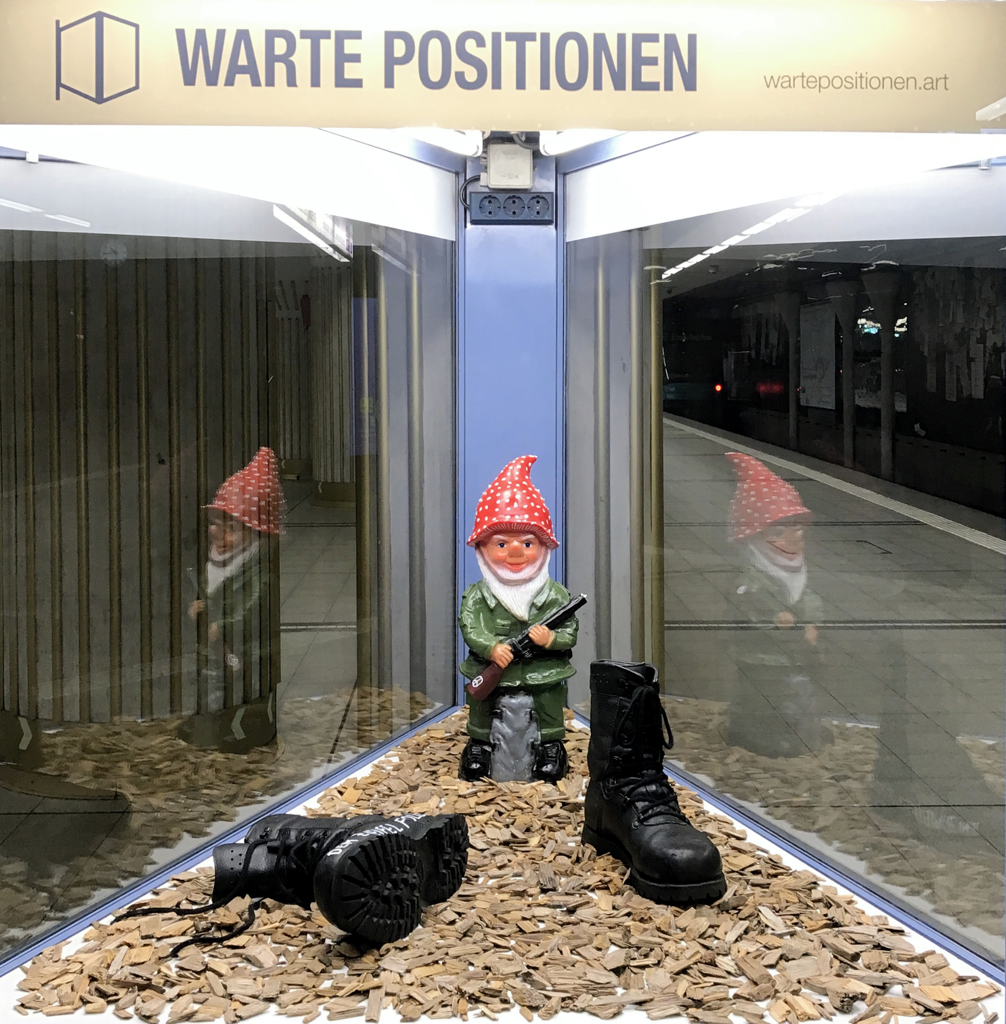 Ansicht Totale - Kunstinstallation - im_dem Zweifel folgen - präsentiert von Warte Positionen, U-Bahnsteig Bockenheimer Warte